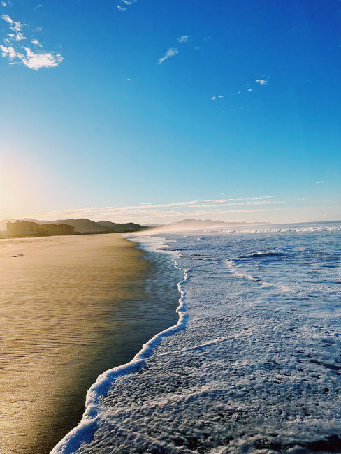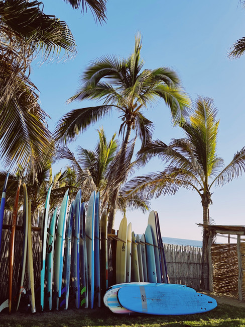It's a tiny beach town with a few restaurants and a swimmable/surf beach for all. So many families, kids and dogs running around the beach.